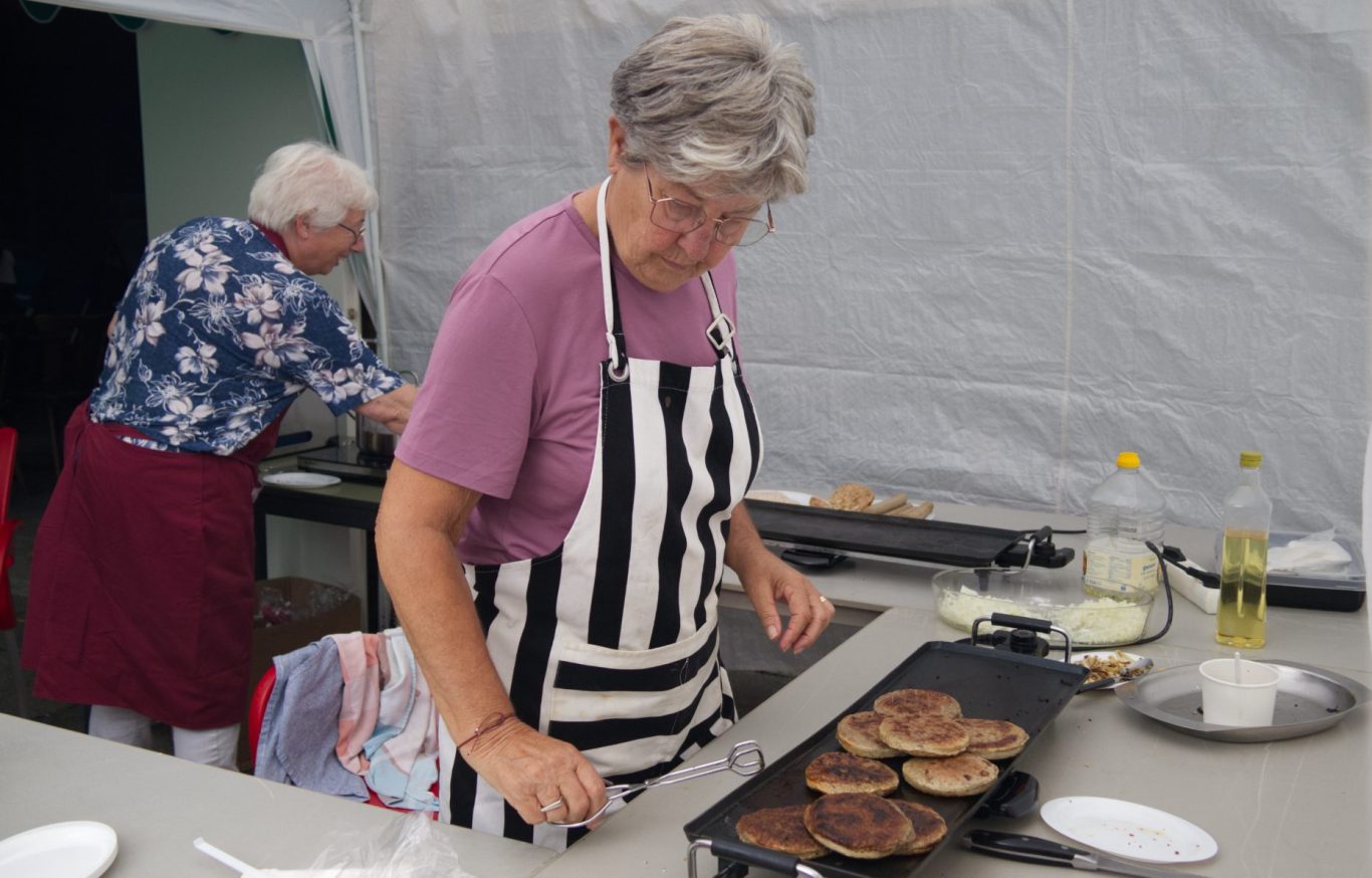 Er werden enkele keren hapjes aan de deelnemers aangeboden en tijdens de lunch werden er kroketten, frikandellen en hamburgers gebakken.
